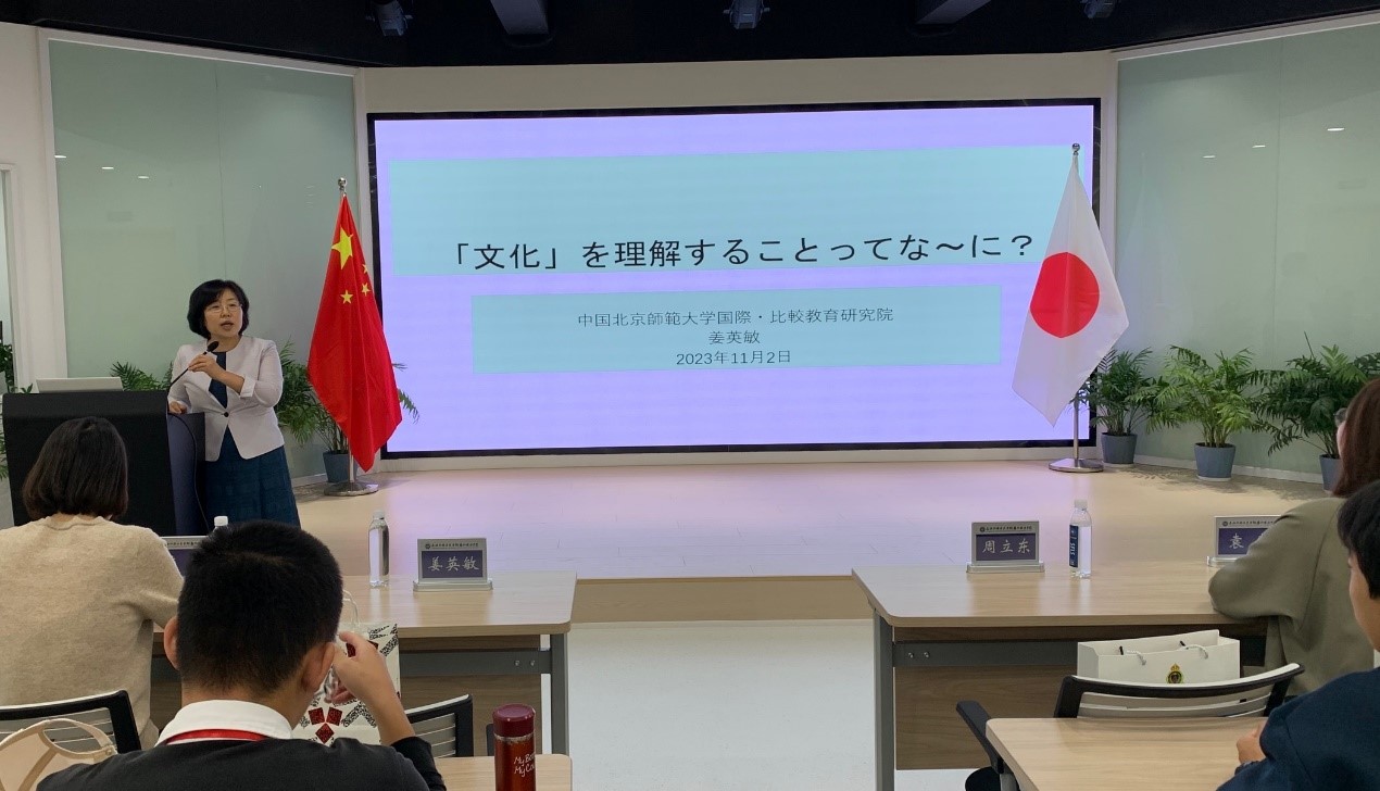 During this event, Professor JIANG conducted a 60-minute lecture. The lecture centered on the theme "What Does 'Cultural Understanding' Mean?". It began by introducing the idea of whether a standardized Chinese identity exists and what it might entail. Using the medium through which interpersonal communication is established, the lecture explained the prerequisites and foundations of "understanding". It then compared the impact of cultural differences between China and Japan on educational practices. Finally, Professor JIANG used a two-dimensional quadrant diagram of "subject-object" and "positive-negative" to illustrate different modes and categories of cultural understanding.