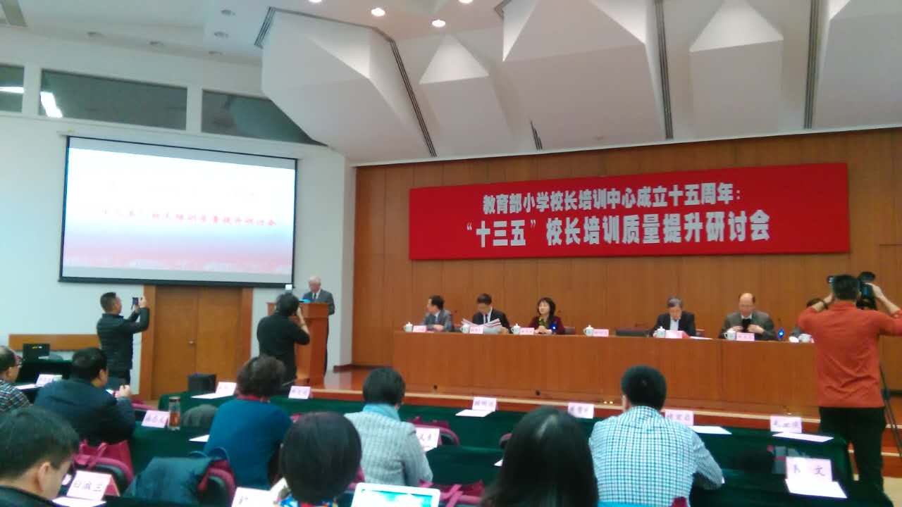 2015年12月17日上午,教育部中小学校长培训中心成立十五周年暨“十三五校长培训质量提升研讨会”在北京师范大学英东学术会堂二楼演讲厅召开。北京师范大学教育管理学院名誉院长、中国教育学会名誉会长、我院资深教授顾明远先生应邀出席并致辞。