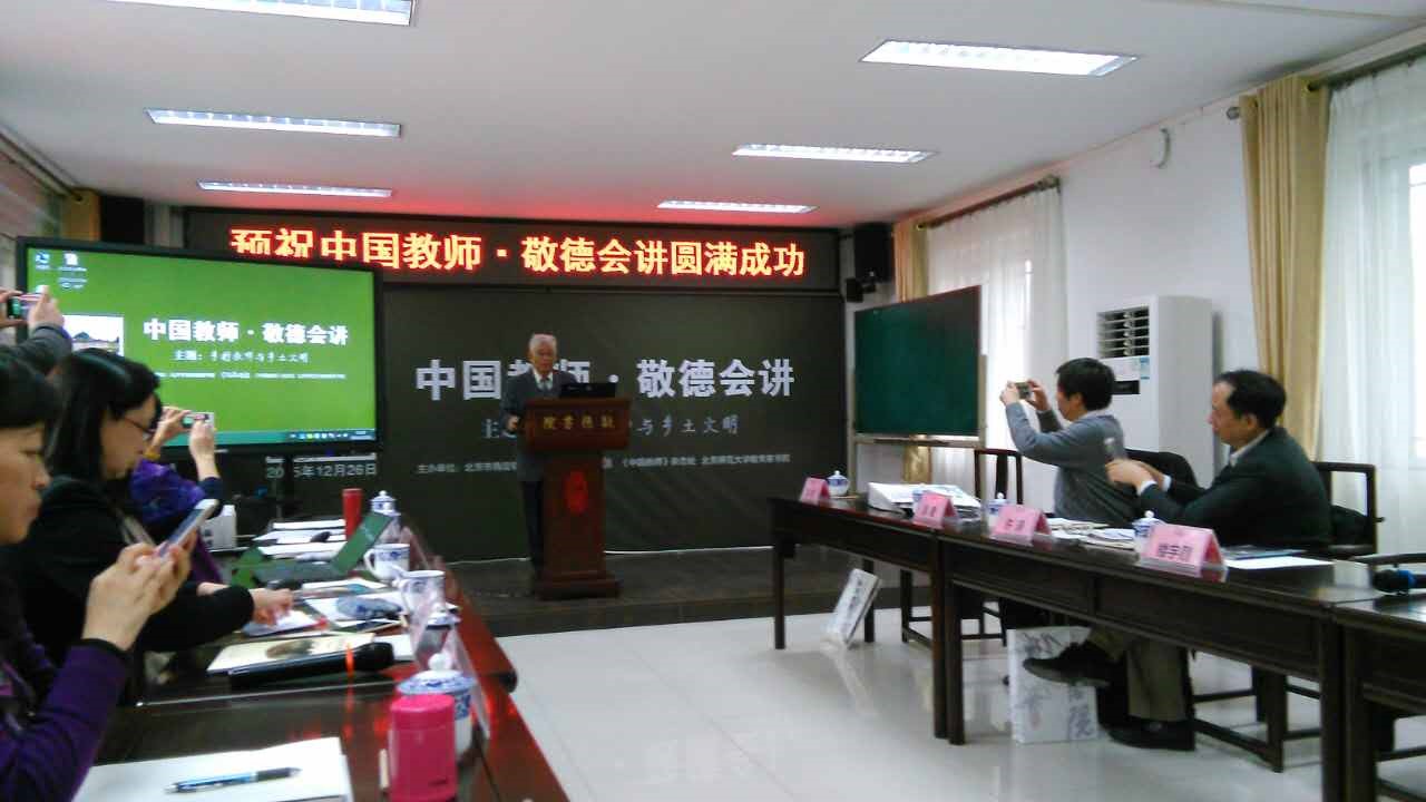 2015年12月25日,中国教师-敬德会讲举行第二次会讲。此次会讲主题为“乡村教师与乡土文明”,由中国教师报总编辑、编审、中国教师-敬德会讲学术委员会秘书长刘华蓉担任主持,中国教师·敬德会讲学术委员会主任、首届轮值主席、我院资深教授顾明远先生出席了会讲并致辞。