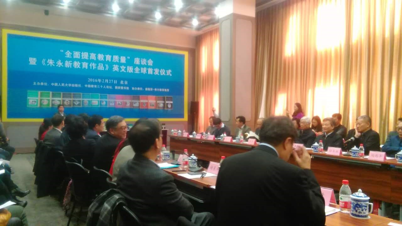 2016年2月27日上午,“全面提高教育质量”座谈会暨《朱永新教育作品》英文版首发仪式在中国国家图书馆举行,中国人民大学党委副书记吴付来主持首发仪式。