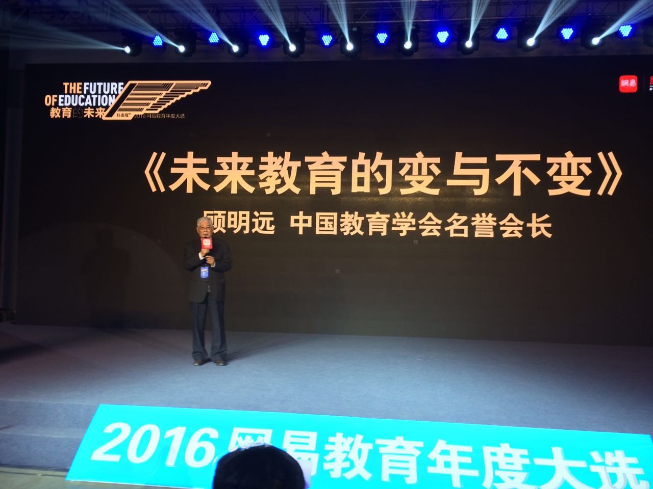 2016年12月5日下午,我院资深教授顾明远先生应邀出席了2016年“教育的未来”网易教育大选,并与现场的教育同仁、媒体及社会各界分享了自己执教68年来的心路历程,以“未来教育的变与不变”为题发表了精彩演讲。
