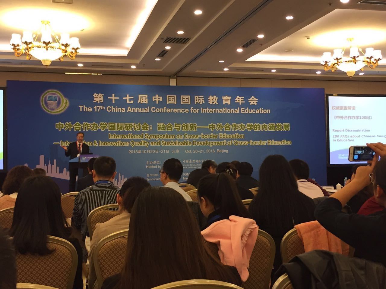 2016年10月20日至22日,以“创新与创业可持续发展人才成长之路:学校、企业和社会的合作伙伴关系”为主题的第十七届中国国际教育年会在北京国际会议中心召开。中国教育国际交流协会会长刘利民先生和爱尔兰教育与技能部部长理查德·布鲁顿(Richard Bruton)先生出席并致欢迎辞,中国教育部副部长郝平先生发表重要讲话。