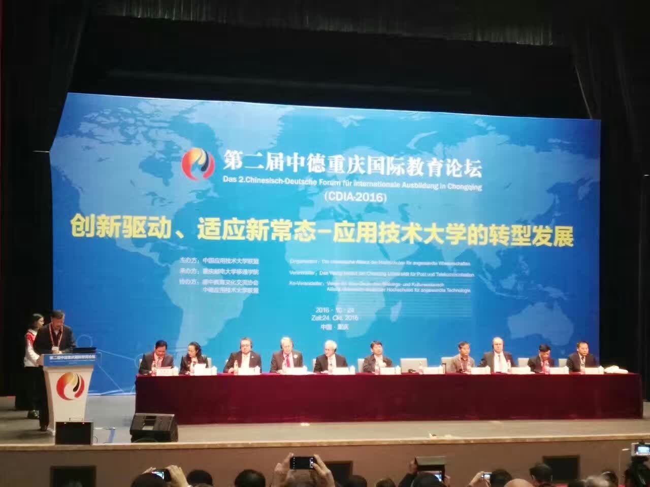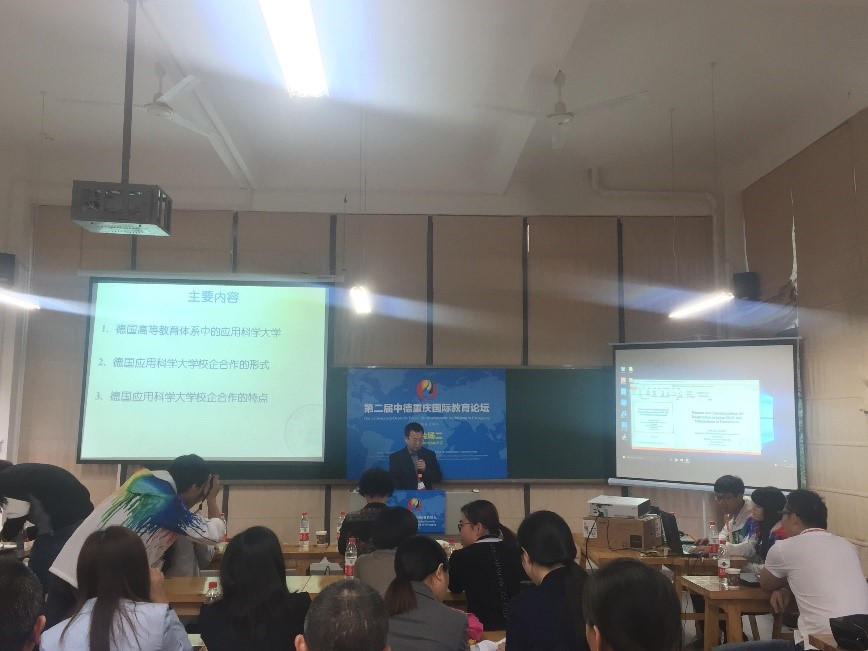 2016年10月23日至26日,第二届中德重庆国际教育论坛(Das 2. Chinesisch-Deutsche Forum für Internationale Ausbildung in Chongqing)在重庆举行。我院教授孙进参加了此次的会议,并做了题为“德国应用科学大学校企合作的形式与特点”的学术报告。