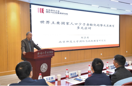 北京师范大学国际与比较教育研究院刘宝存教授应邀出席了会议,并做了题为《世界主要国家人口少子老龄化趋势及其教育多元应对》的主旨演讲。刘宝存教授指出,世界主要国家人口变化呈现出少子老龄化的趋势,为应对少子老龄化带来的问题,世界主要国家在教育领域方面提出了系列对策,如创新教育教学手段,不断提升教育质量;挖掘国民人力资源潜力,提升现有人口素质;大力引进高层次人才,补充劳动力缺口;缓解家长负担,促进人口增长等。新时代我国教育促进人口高质量发展需抓住五个着力点:鼓励人口生育,同步推进婴幼儿照护服务;进一步加大教育改革力度,提高教育质量;在更高水平上普及教育,提高学历教育人口素质;积极应对人口老龄化,提高非学历教育人口质量以及加大海外高层次人才引进力度,缓解劳动力短缺危机。