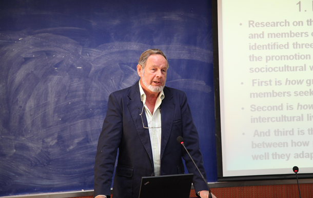 John Berry教授的主要研究方向是跨文化心理学基础理论与研究方法;跨文化接触与心理适应;种族关系调适等。John Berry教授认为,随着人类跨文化运动的增加,社会中的跨文化交流也越来越多,所有的社会都体现出多元文化的特点。从跨文化心理学的角度讲,所有的人类行为都是适应不断出现的文化背景的过程。接下来,John Berry教授又从文化的和心理学的角度介绍了跨文化交流框架。