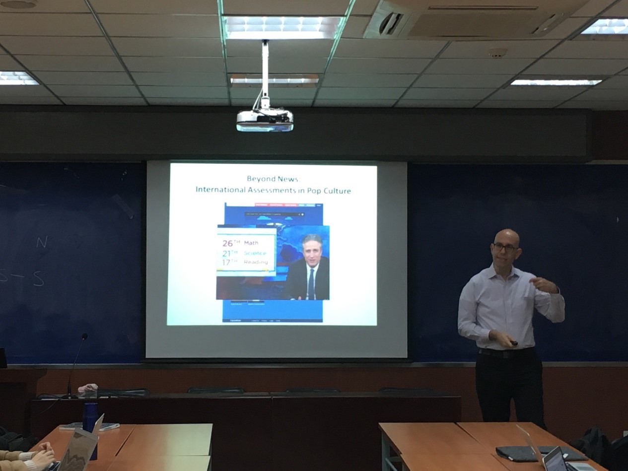 2015年12月29日上午,美国哥伦比亚大学教师学院教授Oren Pizmony-levy,在北京师范大学英东楼723室,为国际与比较教育研究院第89期国际教育大讲堂做了题为 “世界社会中的权力、冲突与变革:以国际学生成绩评估为案例” 的学术讲座。讲座由滕珺副教授主持,我院部分教师、留学生、硕士生、博士生参加了本次讲座。