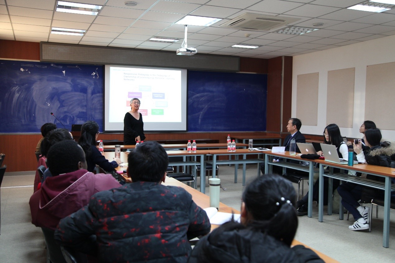 2016年12月8日下午,美国印第安纳大学教育学院的Ariene Benitez和Faridah Pawan教授在北京师范大学英东楼723室,为国际与比较教育研究院第101期国际教育大讲堂做了题为 “美国教师教育的专业化” 的学术讲座。讲座由刘宝存教授主持,我院部分教师、留学生、硕士生、博士生和访问学者参加了本次讲座。