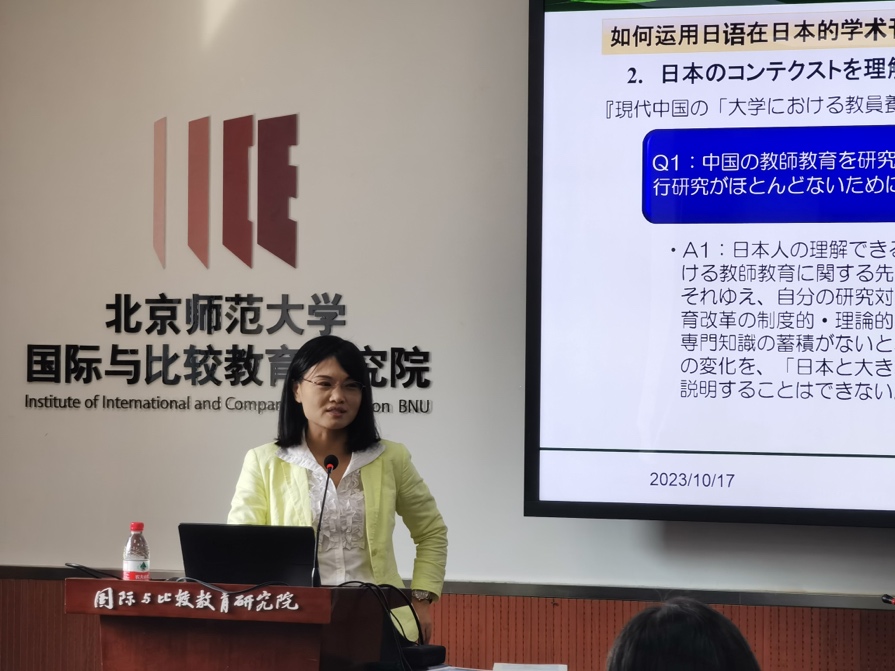 2023年10月17日星期二上午,北京师范大学国际与比较教育研究院第151期《国际教育大讲堂》在英东楼723举行。日本北海道大学教育学研究院张扬老师带来了题为“如何在异文化语境中深入论述可被理解的学术课题——基于中日两国研究背景和学术语境差异性的探讨”的讲座。讲座由我院刘宝存老师主持,学院部分老师和学生参加了讲座。