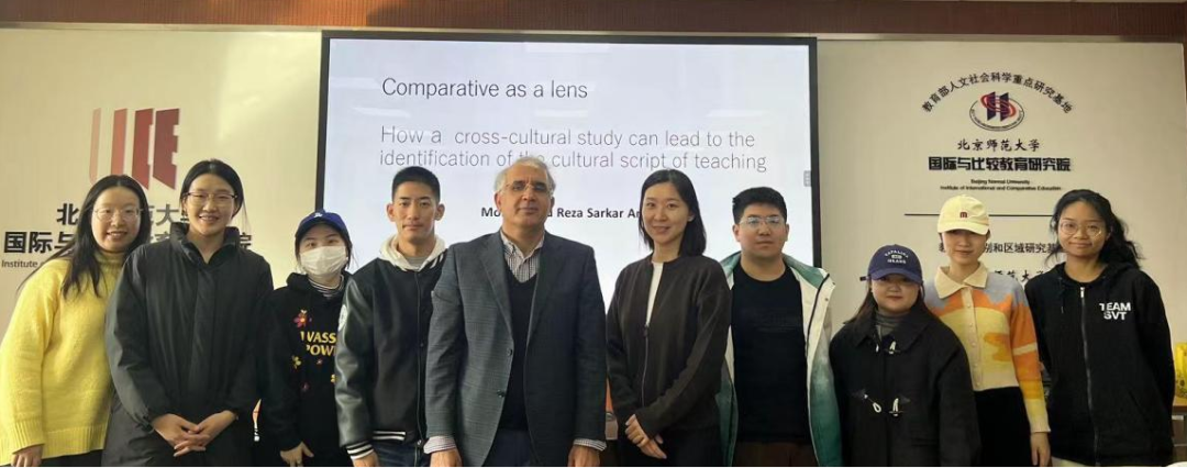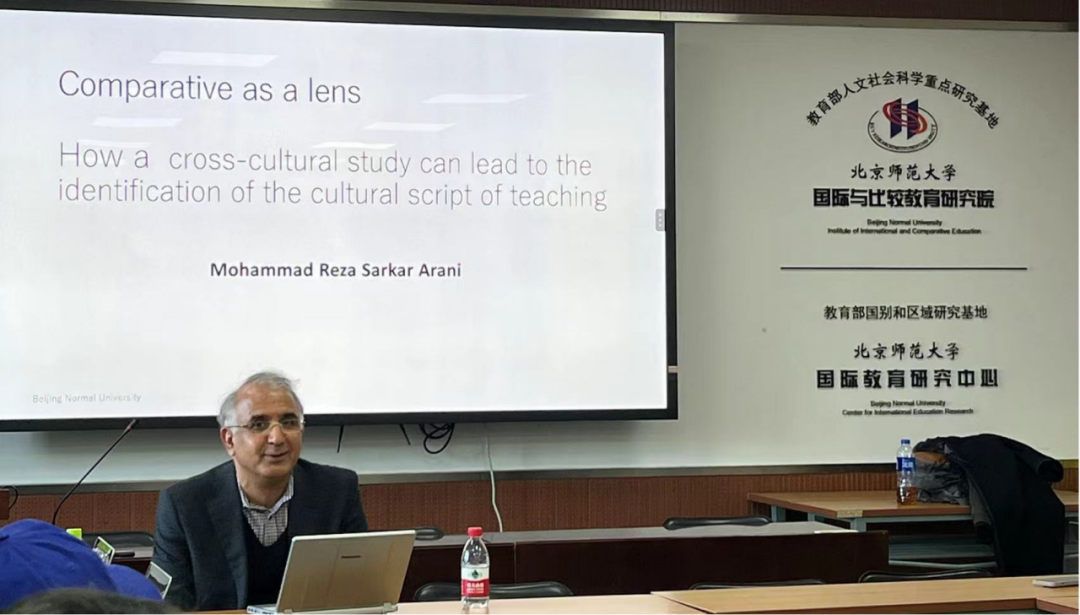 2023年11月28日上午,北京师范大学国际与比较教育研究院第155期《国际教育大讲堂》在英东楼723举行。日本名古屋大学教育学部Mohammad Reza Sarkar Arani教授带来了题为“比较作为一个镜头:通过跨文化研究如何能够发现课堂教学的文化脚本与教学逻辑”的讲座。讲座由我院胡昳昀老师主持。