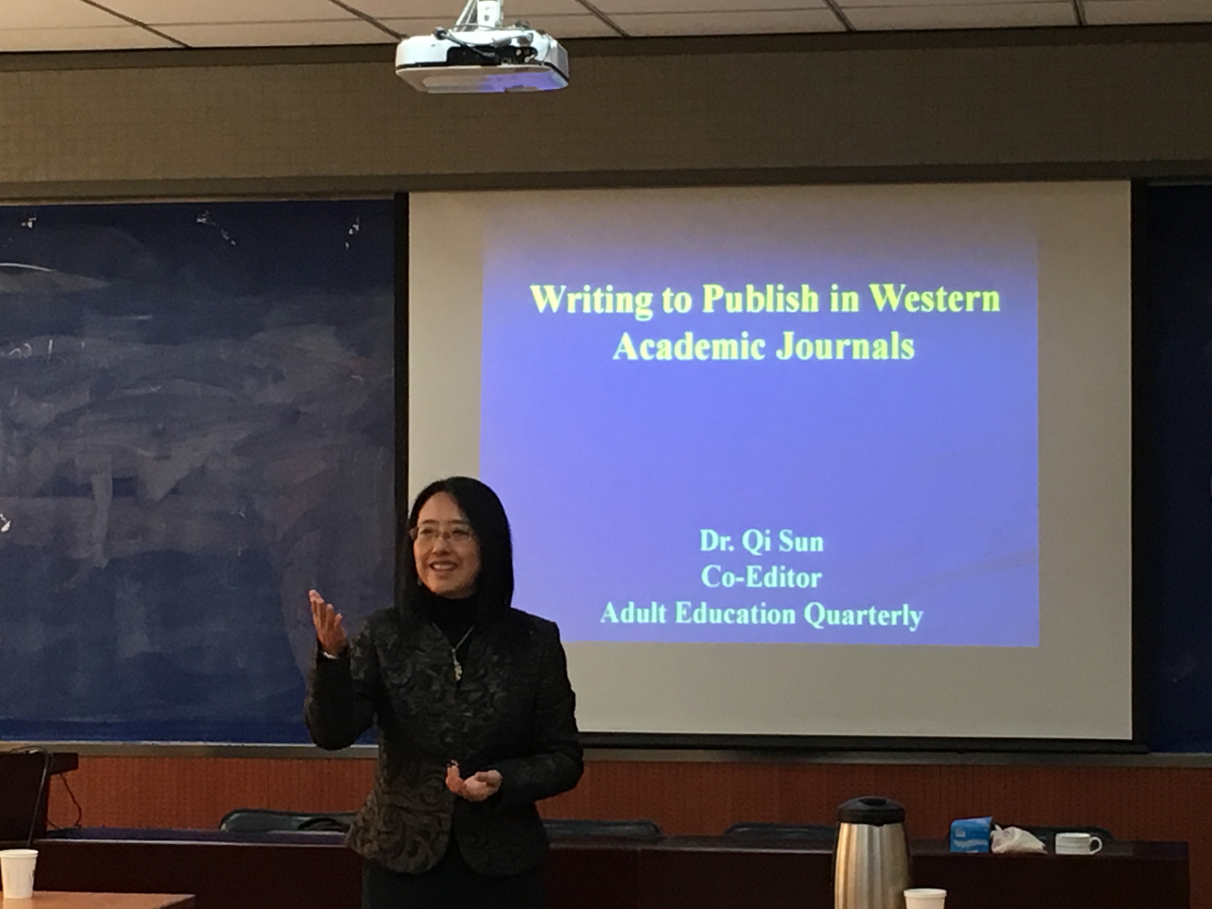 在本次讲座中,孙教授首先结合自己多年审阅国际稿件的丰富经验,阐述稿件写作过程中及投稿前的步骤和要点,然后以《成人教育季刊》发表的文章为例,通过具体案例分析讲解,对在座师生传授了可行方法。孙教授在介绍了《成人教育季刊》选稿标准同时,还分享了英语为非母语的研究者在英语学术杂志上发表论文的面临的问题和困惑及如何走出困惑的路径。然后从“发表文章从哪里开始”这个问题入手,展示并阐述了发表文章的几个步骤,包括:所投刊物关注范围和自己研究的关联适切性,引用文献的相关性、刊物风格、文章所需长度,以及文章格式等。随后,针对如何增加文章被主编选送匿名审阅的几率,孙教授归纳了以下几点:文章总体是否满足杂志范围风格,内容及方法是否符合杂志视界,是否有助于拓展读者视野,标题是否新颖清晰切引人注目,主题是否合时宜,写作是否具有可读性。最后孙教授从文章研究的内容,理论框架、文献回顾、设计方法、发现及结果,阐述结论、影响、贡献,和未来的研究发展方向等方面,阐明了在西方学术杂志上发表文章的几个关键因素。