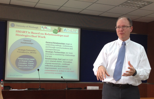 2013年6月24日下午1点,美国匹斯堡大学国际教育研究中心主任、教育学院W.James Jacob副教授在北京师范大学英东楼723教室为国际与比较教育研究院第43期国际教育大讲堂做了题为“跨境教学:21世纪的全球高等教育课堂”(Teaching Across Borders: The Global Higher Education Classroom In The 21st Century)的专题讲座,讲座由杨明全副教授主持,国际与比较教育研究院各个年级的博士生、硕士生和部分老师参加了此次讲座。