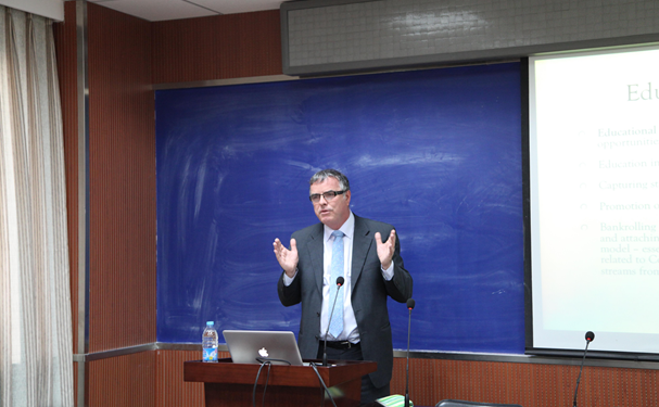 2013年12月4日下午,新西兰坎特伯雷大学(University of Canterbury)的David Small教授在北京师范大学英东楼723教室为国际与比较教育研究院第54期国际教育大讲堂做了题为“大型开放式网络课程(MOOCs)和全球高等教育的转型”(MOOCs and the Global Transformation of Higher Education)的学术讲座。讲座由刘宝存教授主持,国际与比较教育研究院的研究生参加了此次讲座。