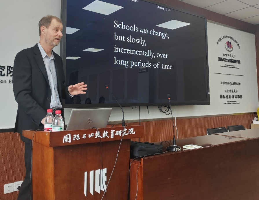 2024年4月25日上午,北京师范大学国际与比较教育研究院第161期《国际教育大讲堂》在英东楼723室举行。来自哥伦比亚大学教育学院的Thomas Hatch教授带来了题为“未来难以预测:我们需要怎样的教育(The Education We Need for a Future We Can’t Predict)”的讲座。讲座由我院滕珺教授主持。