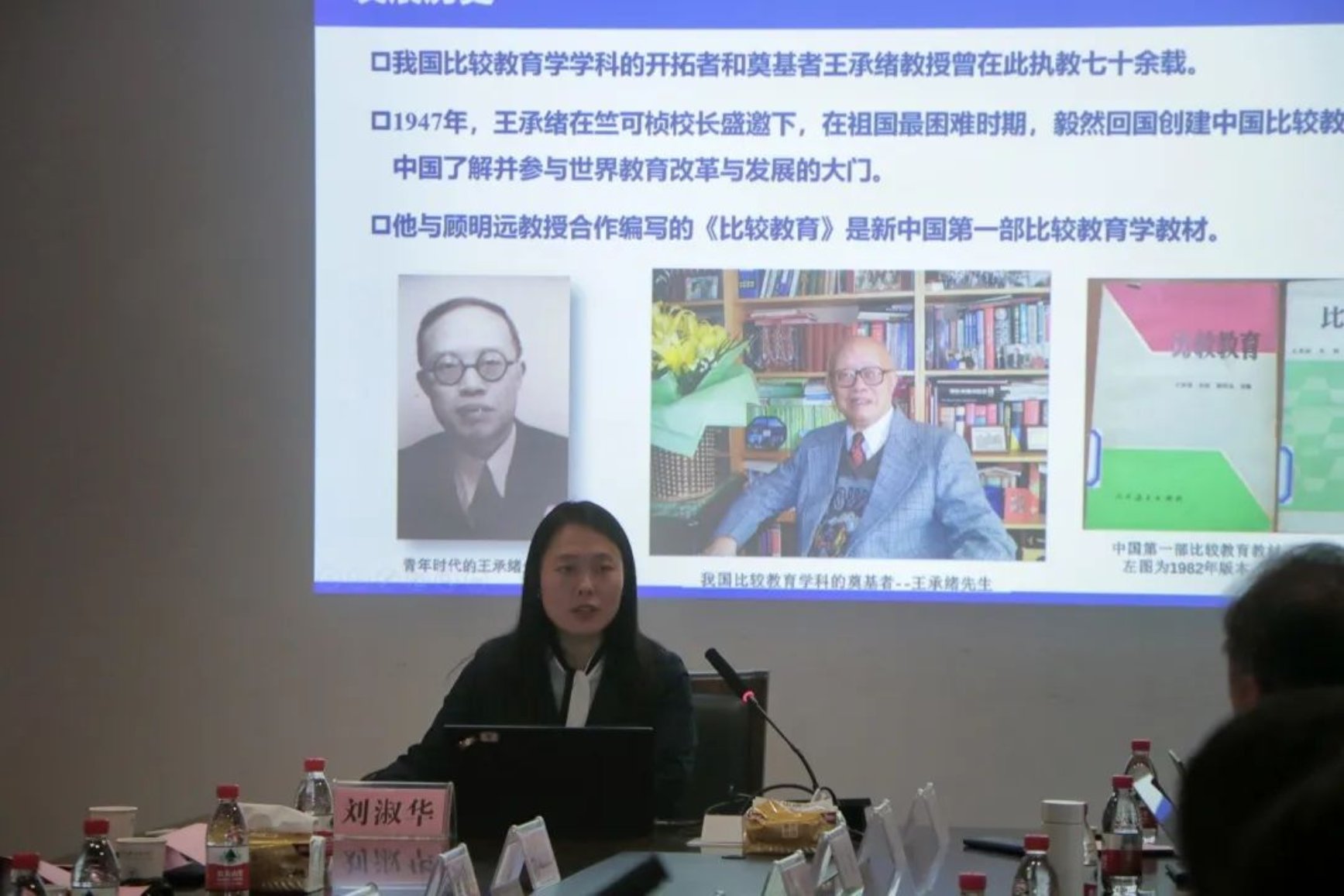 我院刘宝存教授与浙江大学教育学院刘淑华教授分别介绍两院比较教育学科发展概况。刘宝存教授回顾了我院60余年的发展历史,并介绍了我院每位老师的研究领域与研究方向。刘淑华教授从发展历史、团队成员、科学研究、国际交流、人才培养全面系统介绍了浙江大学教育学院比较教育学科发展概况。在展示教育学院发展现有成果的同时,指出教育学院在学科建设、师资培养方面仍有一定进步空间,希望未来与北京师范大学加强交流、互通有无、共同进步。