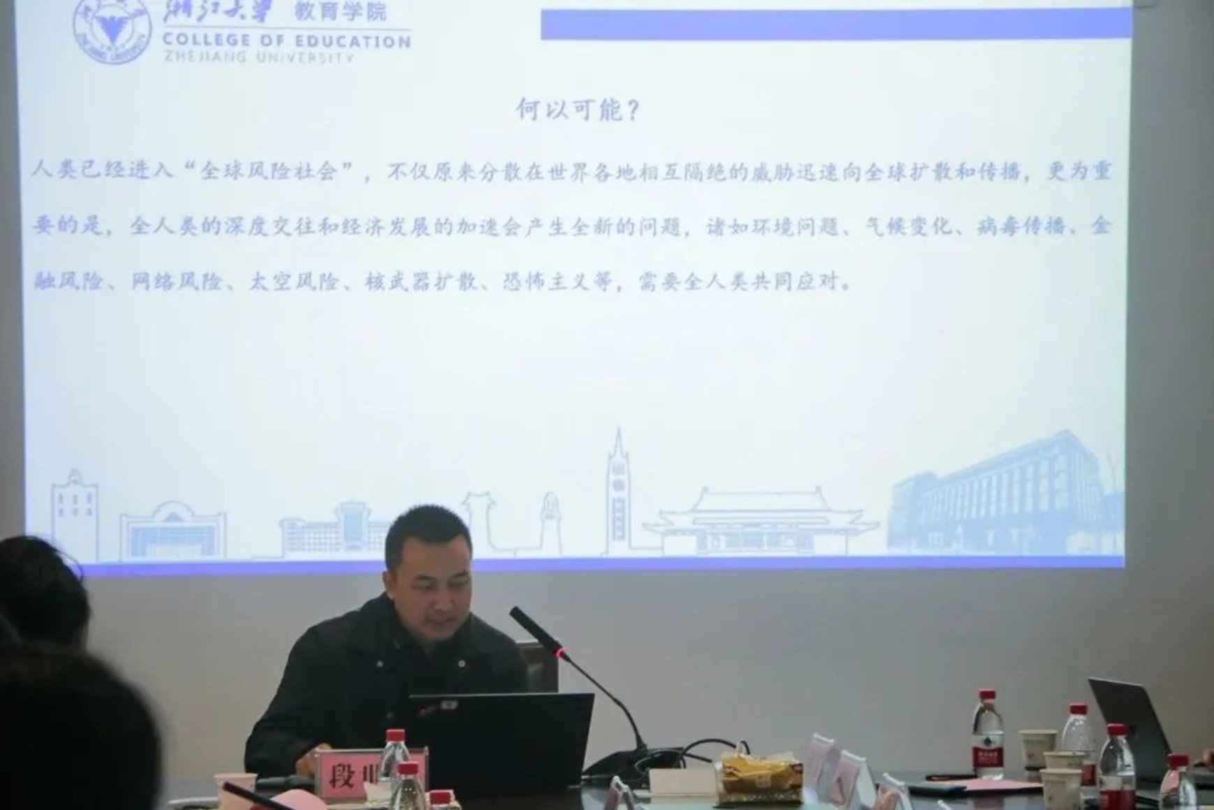 浙江大学教育学院党委书记吴巨慧首先致辞,他代表浙江大学教育学院对我院各位老师表示了欢迎。吴巨慧书记强调,世界一流大学与优秀学科的建设离不开高校间的“互联互通”,浙江大学教育学院的学科建设一方面需要促进不同学科的交叉融合,另一方面需要加强与国内外一流大学的交流沟通,希望未来通过深化两校的合作,不断推进教育强国建设,推进教育、科技、人才一体化建设,为实现中华民族的伟大复兴做出教育应有贡献。
